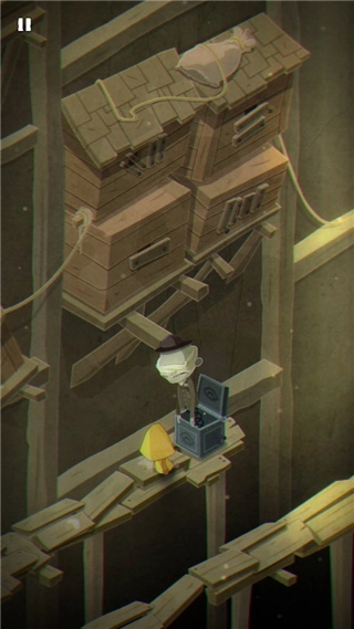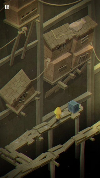当你开启极小梦魇手机版游戏,一开始会身处一个热气球上,只需拉下气球上的摇杆,便会掉落至地面,此时就能开启前行之旅。