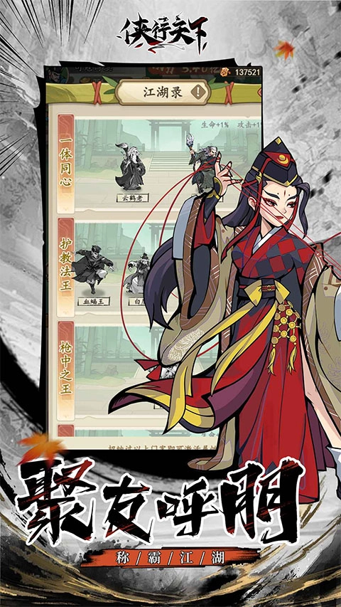 《侠行天下》是一款充满趣味的武侠题材游戏。于游戏里,玩家会化身为一名平凡的武侠新手,在游戏世界中展开闯荡。怀揣一心向武之志的你,就此踏上习武征程。在这个过程中,你一边于江湖中闯荡,一边研习高深的武林秘籍,持续变强。在此期间,你不仅会遭遇江湖中的各类纷争打斗,还能结识诸多知心好友,他们会成为你闯荡旅程的得力助力。