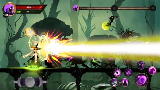 总体而言,这款游戏与常见的横版闯关游戏类似,操作方式为左侧控制移动,右侧负责技能释放与跳跃,中规中矩。在游戏中,玩家需要凭借自己犀利的操作与走位,尽可能躲避敌人的攻击,并将所有敌人战胜击杀。