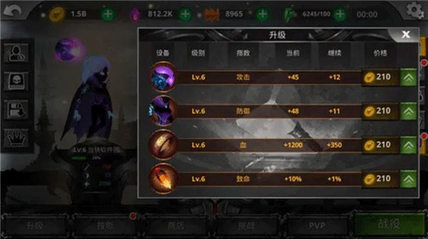 3、除了升级所带来的属性加成,通过学习技能同样能够提升角色的战斗力。此外,还可以勇闯生存模式来积攒奖励。