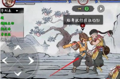 1、首先你点击近身投技,看一下按键式左方向键和B键。
