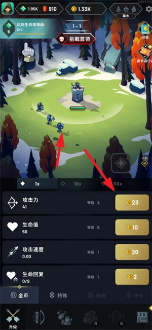 2、玩家可以快速召唤出弓箭手,这样就能一直战斗下去,并且游戏即使离线也可以获得奖励。