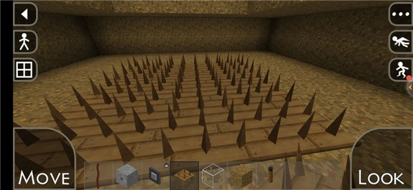 7、这便是制作完成后的陷阱,在家门口设置一个,然后连接到屋内。白天的时候,丢些肉来引诱狼进入,等到月圆之夜狼变成狼人后,按下按钮,刺钉就会冒出来,如此一来,刷钻石简直轻而易举。