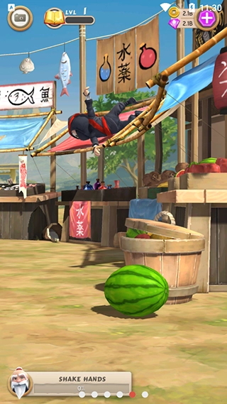 42、买西瓜去扔忍者,如果你扔的好,忍者会将西瓜击飞的。