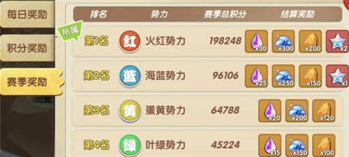 (4)每个赛季结束时,会根据势力排名发放赛季奖励。