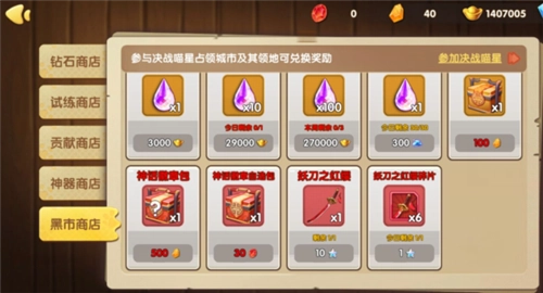(5)决战喵星结束后,积分将重置,你所赢得的黄金可以兑换许愿水晶,通过许愿可以获得大量徽章奖励。更有红色神器妖刀红樱可兑换,10个梦幻结晶可兑换一把完整的红樱,仅能兑换一次,之后可以兑换红樱碎片。需要注意的是,只有在拥有足够的梦幻结晶时红樱才会在黑市商店显示,如突然发现没有红樱可兑换了,不要担心,等获得梦幻结晶后就会再次粗线啦~