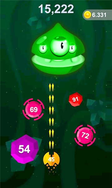 1、简单规则: 使用手指滑动武器,射击上方飞行的球球。