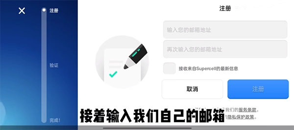 4、在此需注意,左上角的supercell id仅具备登录功能。对于从未注册过的玩家而言,需先完成新手教程,方可进行注册并绑定supercell id。