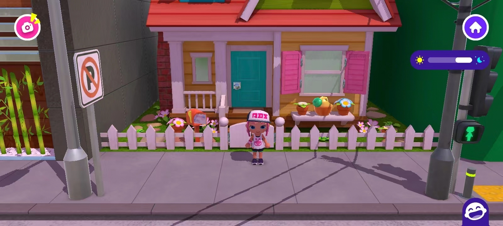 4、轻点屏幕右上方的时钟按钮,即可实现白天与黑夜的切换;而屏幕左上角的图标,具备拍照功能,你不仅能够借此拍摄自己身着精美服装的照片,向亲朋好友展示炫耀,还能抓拍游戏过程中的奇妙瞬间。