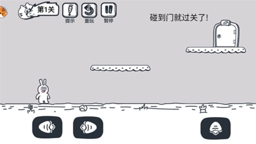 2、第一关相对较为简单,只需进行两次跳跃,抵达最高处的门那儿即可。