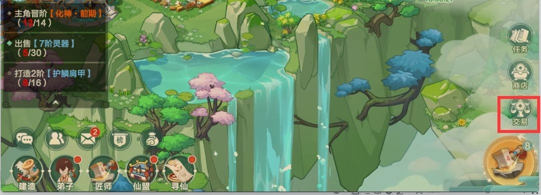 首先,在主界面中寻找到灵坊,或者点击右下角的“交易”按钮。