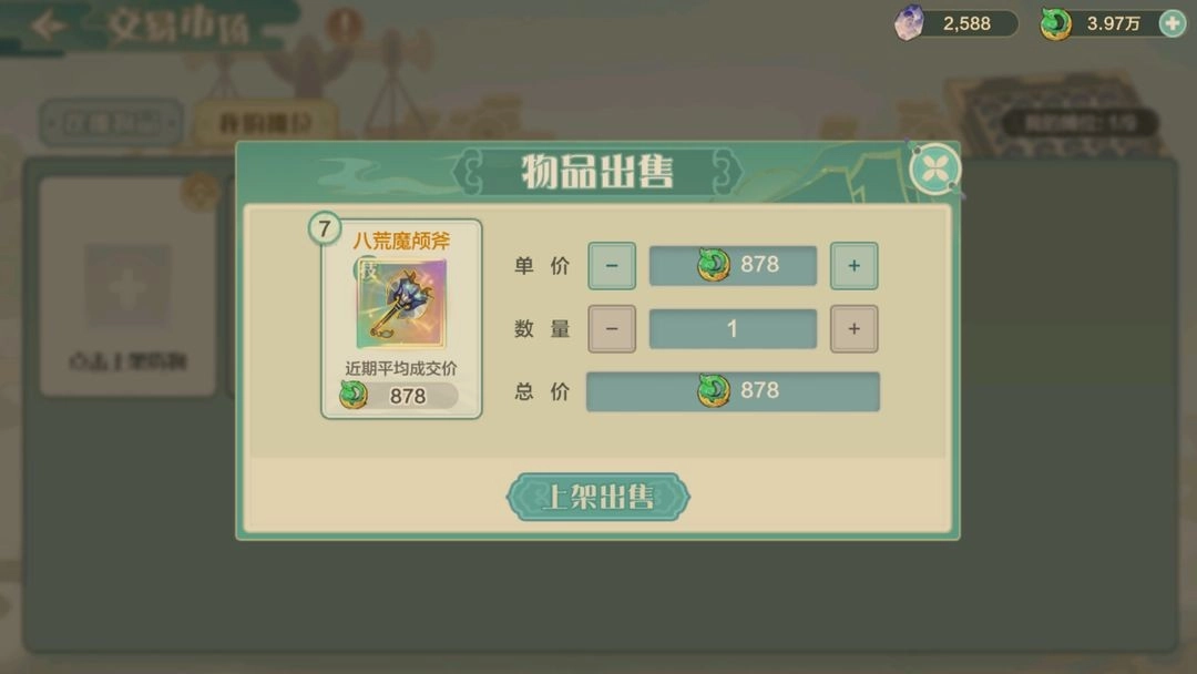 除了购置装备之外,也能够通过摆摊的方式来售卖装备或道具。点击上架物品选项,挑选你打算出售的装备或道具。