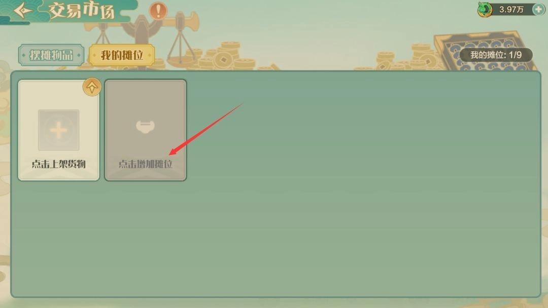 若要上架多个装备,需点击“增加摊位”。