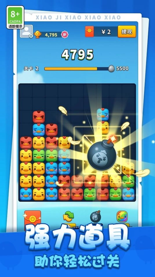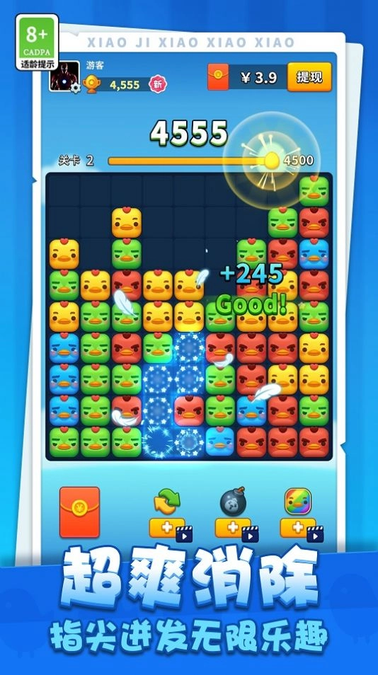 小鸡消消消是一款关卡任你无限挑战,上百个关卡设计,并且新增超多关卡的休闲益智消除游戏,全新的游戏界面,动物和海洋生物等你来玩,特色的打击感,同样的动物消除触发特效。如果你也想玩的话,赶紧来吧!