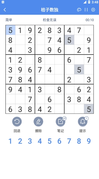 数独作为18世纪流传至今的数学游戏,到目前为止还是非常受大众的欢迎,所以现在市面上出现了很多关于数独的,但是这些都不是很完美,有些要么太过简单,要么广告满天飞,今天就让小编给大家介绍一款数独游戏——桔子数独。作为一款数独,其游戏界面整洁,没有什么花里胡哨的广告,并且游戏容量小,不会占用太多的手机内存,我们在日常无聊的时候,就可以打开这款游戏,随时随地进行玩耍,就算没有网络也没有关系,本游戏不联网也可以游玩。另外,游戏规则十分简单,我们只需要在9x9格子内填入1-9的数字,使其上下左右以及所在正方形内能够组成1-9的数字即可,所有的数字都是固定位置。除此之外,游戏还有多种难度供玩家选择,如果你遇到困难还可以点击提示,帮助你成功通关,感兴趣的玩家快点来玩玩看吧!