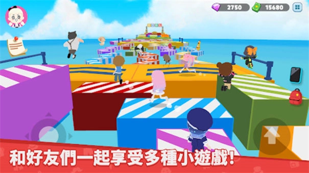 2、玩游戏,玩法有糖豆人,迷宫等,玩到最后一个得皇冠跟钱。