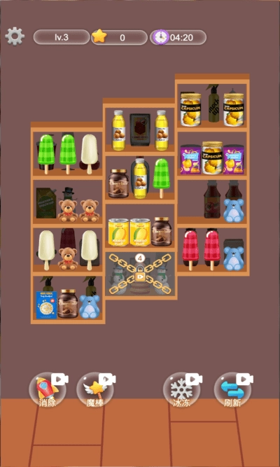 1、基础消除:玩家通过拖动相同的物品进行配对或三重匹配,完成消除任务并整理货柜。