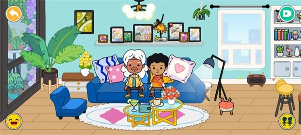 2、来到了谁家住宅呢?客厅温馨又舒适,摆放着当下流行的克莱因蓝色沙发。点击人物图标,就能呼唤城市中的小伙伴,让他们在沙发上稍作休息。仔细观察客厅布局,你家是否也如此整齐?向右拖动画面,便能参观厨房和卧室,这里是妈妈每日为你们烹制三餐之处。做饭用的餐具、食材和调料,你都认识吗?