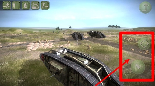 3.驾驶坦克驰骋战场,通过右侧控制面板能够调节方向与视角,实现灵活机动,精准瞄准敌方阵地展开炮火攻击。