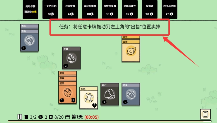 2. 把村民卡牌拖到资源点,完成采集任务就能获得基础物资。