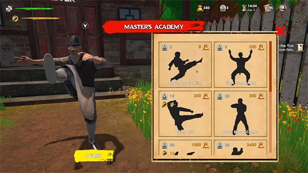 3、借助收取学费以及参与竞技赛的方式来获取资金,进而亲身体验第一人称视角下的武术战斗。