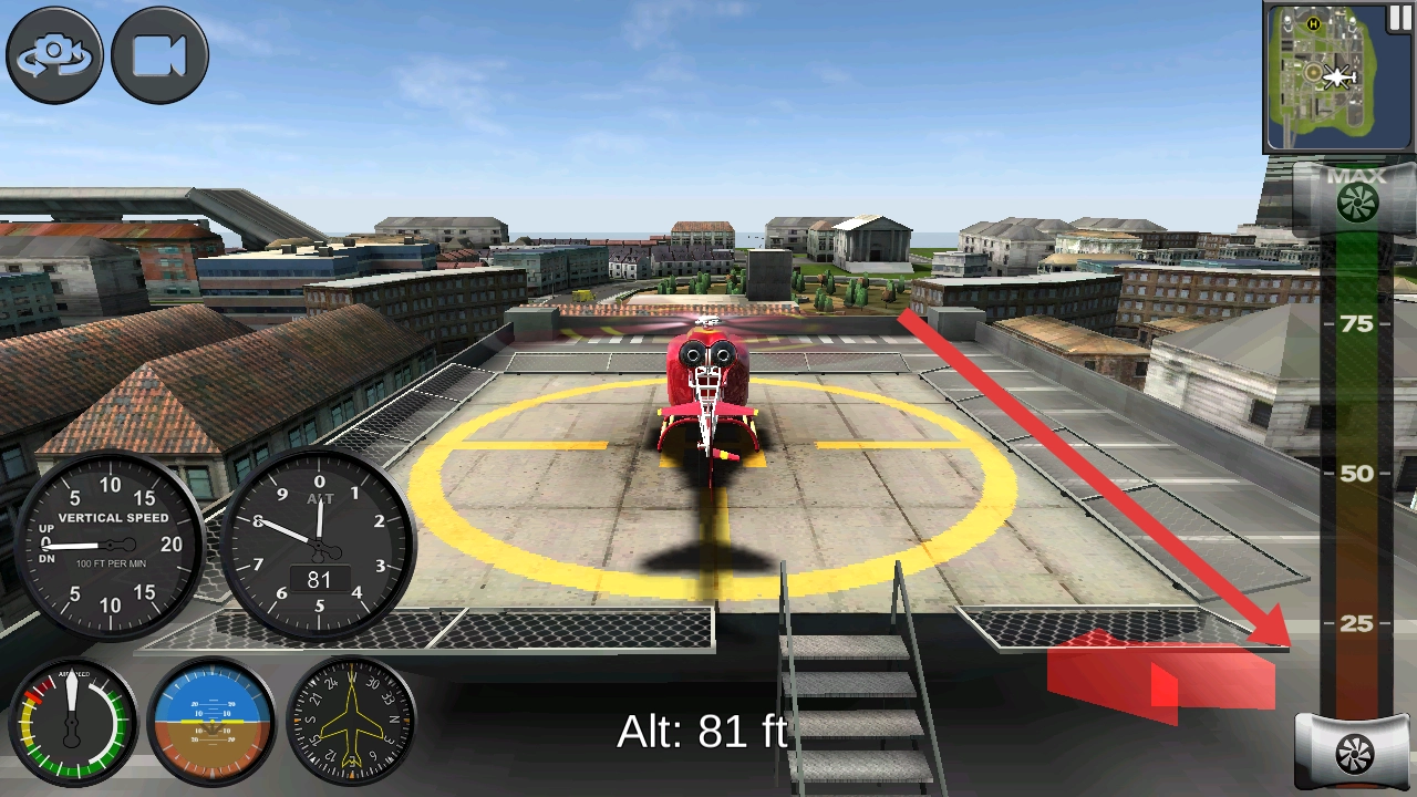 1. 于停机坪启动直升机之际,需将右侧油门杆调节至最大动力,同时参照仪表盘数据,以使直升机平稳升空。