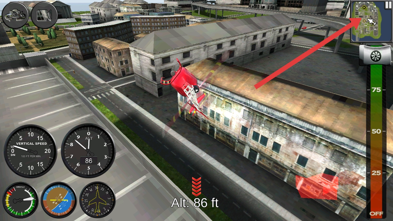 3、驾驶过程中,可依据右上角小地图的目标标识,规划飞行路径,按指引方向飞行。