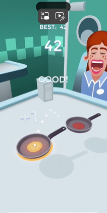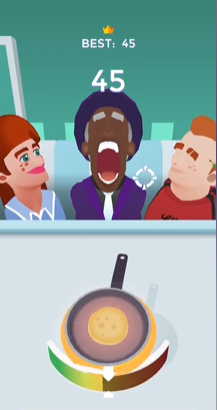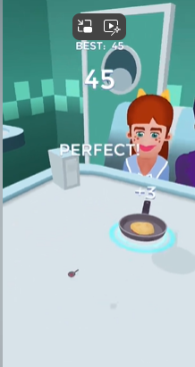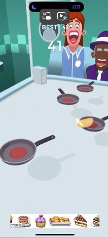 在游戏里,玩家要不断点击饼子使其持续翻转,接着按住屏幕,让饼子飞进煎锅中。