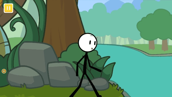 1、第一关,火柴人需要通过踩在老奶奶的身上过河,这时需要选择减肥药,即可过到对岸啦。