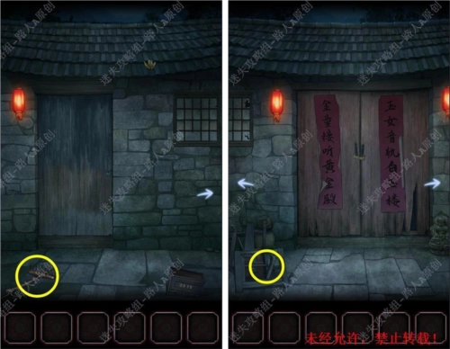 3、封门村有着各式各样共通的古代机关,等待着你去开启。其中,一扇紧锁的门极难打开,这就需要你充分施展自己的聪明才智了。