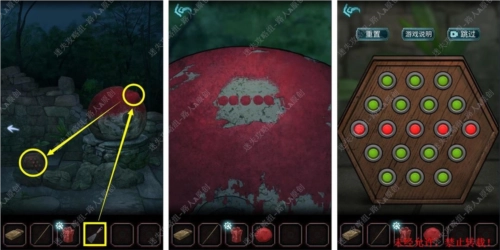 5. 使用【刮刀】获取朱砂,依据石头上的红点线索,开启机关盒从而得到【铜币】。5.1