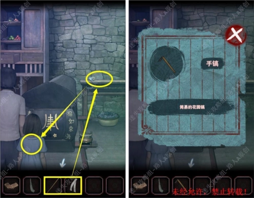 8. 对房间展开调查,获取麻绳、铜铃以及铜珠。