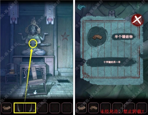 10. 捡起【毛笔】、【右手掌】、【半个镶嵌物】 。10.1