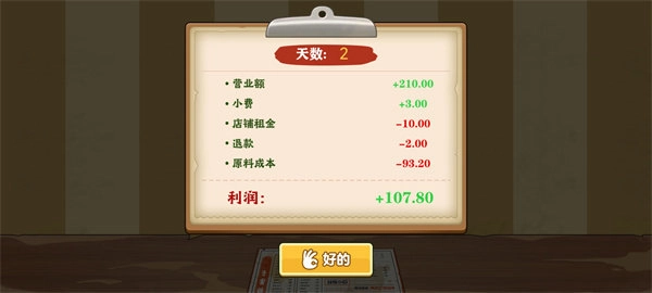 7、当一天的营业结束后,就能知晓每日的利润情况啦。