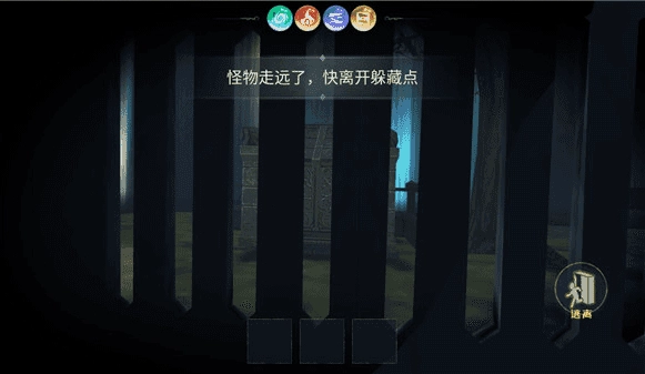6、当怪物快速靠近时,需立刻躲进躲藏点。成功躲避怪物后,找到传送门就能获胜。