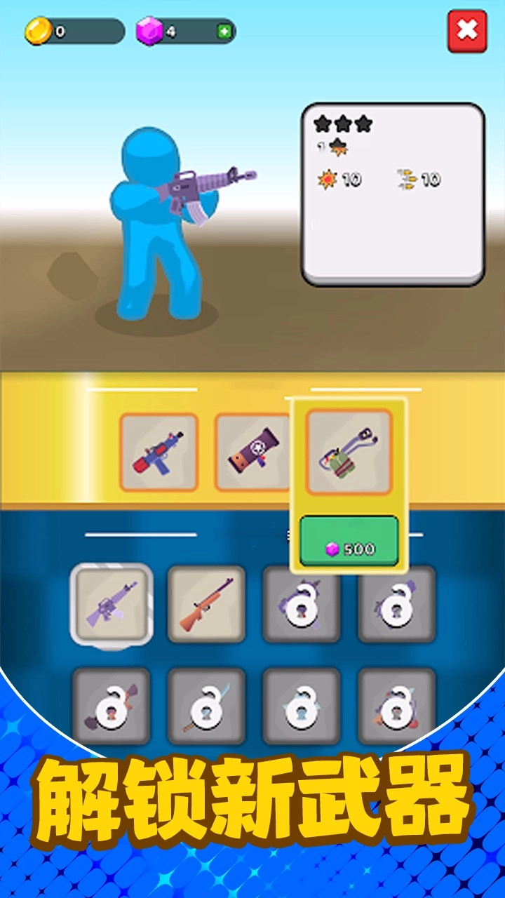 只需简单点击,就能完成瞄准射击。丰富的武器特效与打击反馈相配合,让每一次开枪都带来强烈的成就感。其核心玩法轻松上手,却又不乏挑战性。