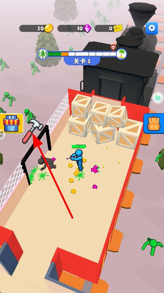 1. 玩家通过滑动屏幕来操控角色在火车车厢上进行移动,需灵活地调整位置,以应对来自不同方向的敌人。