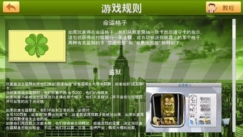 5、若连续三次投掷出双数,就会被判定为“超速”,进而被送入监狱;当棋子投放至红色的“开始”格子时(前提是非监禁状态),玩家可领取200金币。