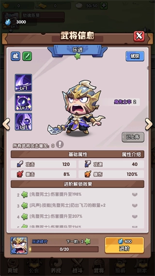 3、每一位将军都具备独一无二的技能与成长路线,玩家能够制定专属的训练规划,充分挖掘并释放将军在战斗中的最大潜力!