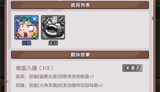 孟获:技能【猛兽出笼】所召唤老虎的数量增加1只。