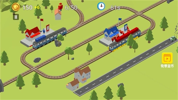 玩家需仔细辨别铁路走向,通过点击屏幕上的铁路与火车,实现对火车前进及方向的操控。同时,务必留意乘客的颜色,只有将乘客送至同色车站,乘客才会下车,上车规则同理。待乘客或货物抵达目的地车站,即宣告任务成功。