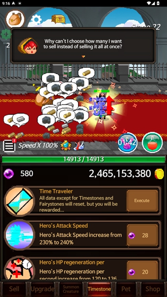 2. 进入后,第一回合马上开启,勇士将挥砍怪物,届时会掉落大量材料。