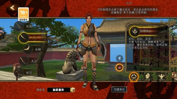 刀的物理攻击高于魔法攻击,适合武功系列的角色。