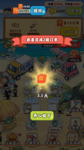 2、每成功完成一笔订单,都可收获颇为可观的红包奖励。不仅如此,持续用心经营,还能够提升设施等级,使制作速度大幅加快,进而获取更为丰厚的奖励!