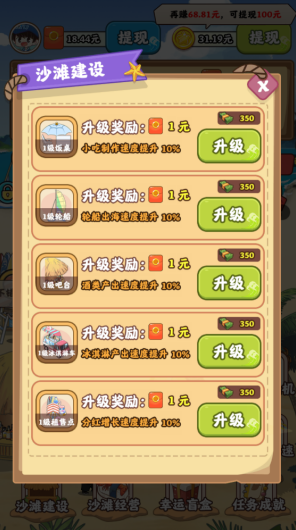 夏日海风红包版的最新版本,是一款趣味性十足的模拟经营类游戏。在这款游戏里,玩家会在海边打理一家美食店。玩家得负责烹饪各种美食,同时准备好各类饮料,只有满足顾客的多样需求,才能赚取游戏中的金币,进而扩大店铺规模,解锁更多顾客与美食。从最初的小小摊位起步,逐步发展壮大,在尽情体验经营乐趣的过程中,还能收获红包奖励呢!既能享受游戏的快乐,又能实现赚钱的小目标,感兴趣的朋友们,赶紧行动起来吧!