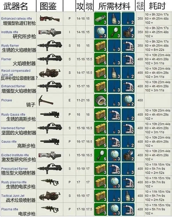 武器装备打造所需材料