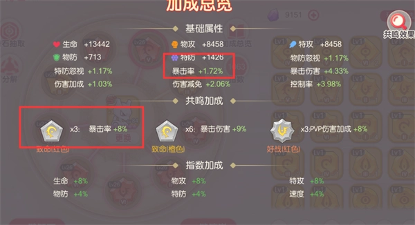 在符石中有两个地方能够增加暴击率。其一为符石自身的暴击属性,其二是共鸣效果。