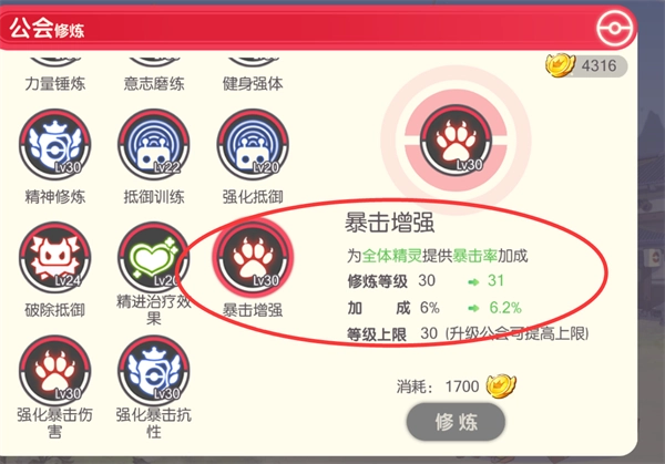 这里可以提升所有精灵的属性,后面也有暴击的效果。