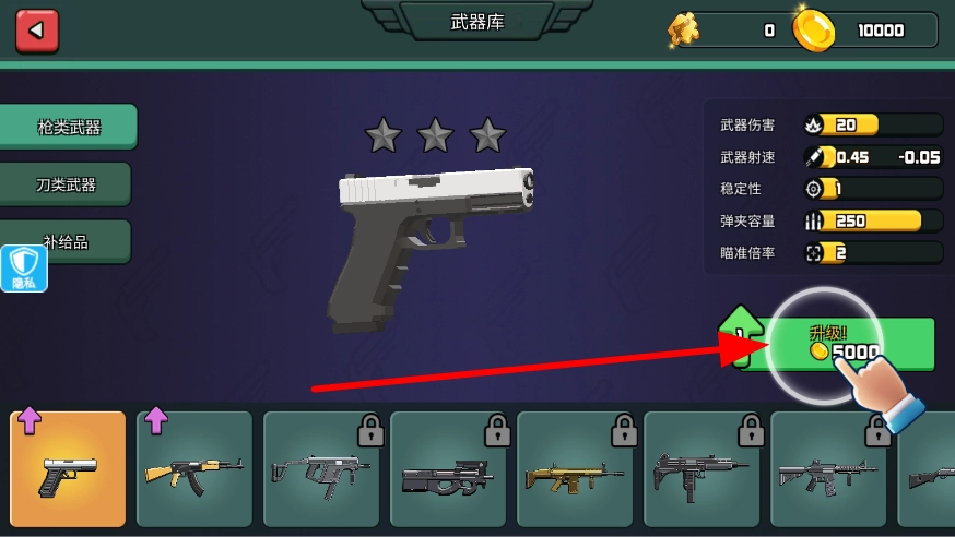 2、移步至武器库,花费金币来升级武器,增强武器诸如伤害、射速等各项属性,使武器于对战时能够展现出更为强大的威力。