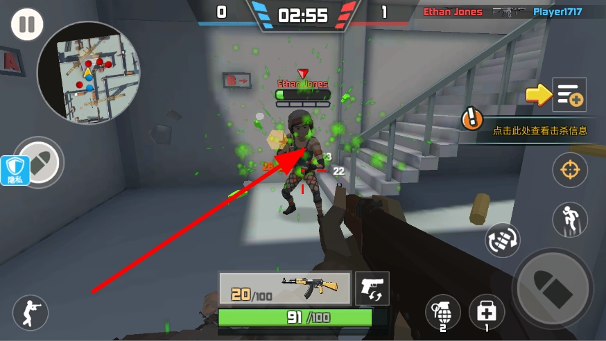 4、踏入对战场景后,对角色进行操控,锁定敌人并展开攻击。借助升级后的武器以及阵营所带来的加成优势,在对战过程中成功击败敌人,从而获取胜利。